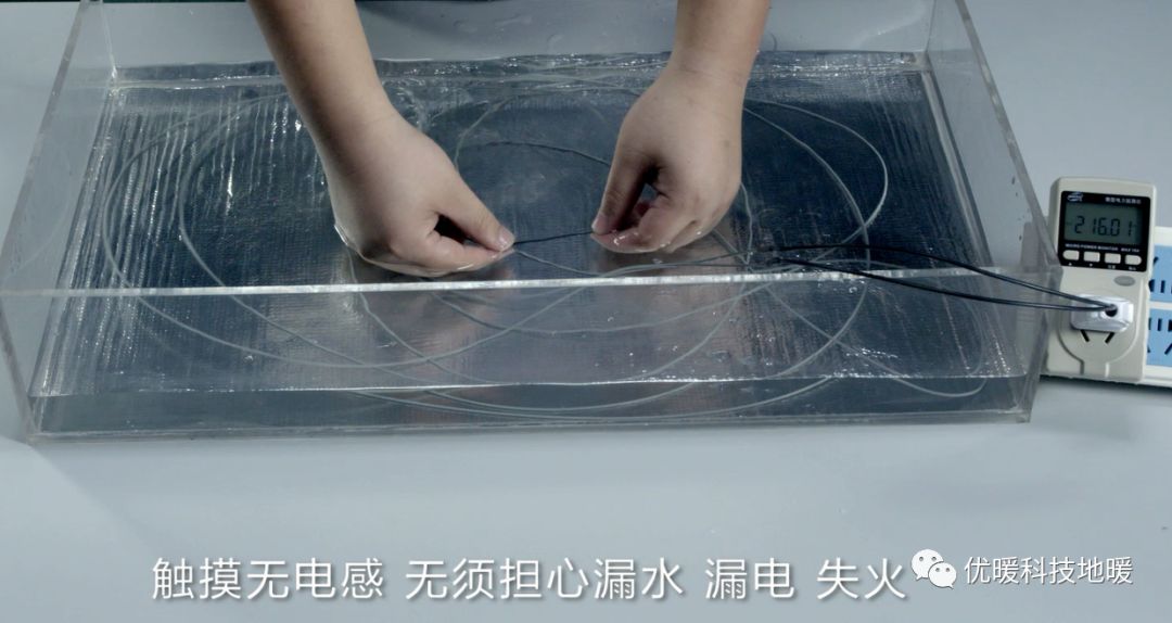 優(yōu)暖科技碳纖維地暖采用全密閉結構設計,防水等級七級以上、防漏電,在一米深的水下,加熱不漏電,安全有保障。防水性能以及安全性能在業(yè)內遙遙領先。